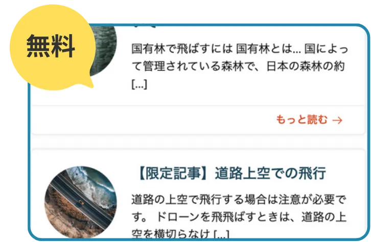 飛行ガイドブックや飛行日誌作成サービス「Dronbo」の報告フォーム、限定コンテンツの閲覧パスワードなどをご提供いたします。