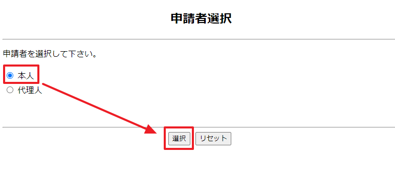 ▲「本人」にチェックを入れて、「選択」をクリックします。